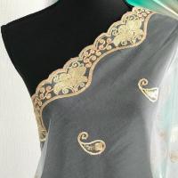 スパンコール付きの波デザインの花柄チュールレースに