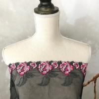 レース リボン 手芸 幅広 バラ模様 ピンク 刺繍リボン 手作り 飾り 素材 装飾 材料 衣装 チュールレース