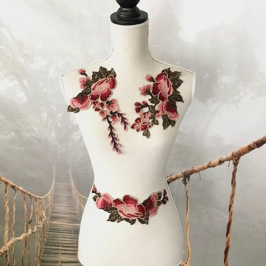 ローズモチーフ 薔薇 ビンテージ調 レースモチーフ モチーフレース カラフル バラ ダンス 衣装 装飾 レオタードモチーフ バトンモチーフ ベリーダンス
