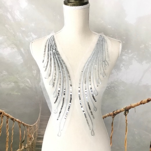スパンコール モチーフ フェザー シルバー 羽根 チュールモチーフ セット 装飾 バトン レオタード バレエ衣装 新体操