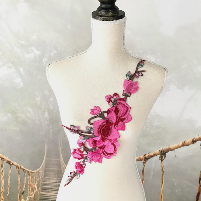 モチーフレース 花柄 薔薇 バトンモチーフ バラ モチーフ ピンク グリーン 服飾 レオタードモチーフ 装飾 衣装モチーフ バレエ衣装 チュチュモチーフ