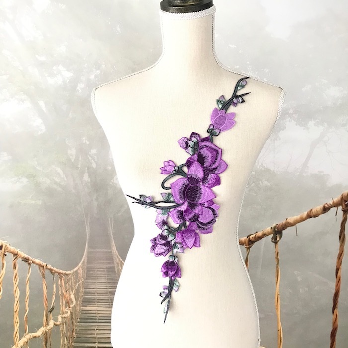 モチーフレース 花柄 薔薇 バトンモチーフ バラ モチーフ パープル グリーン 服飾 レオタードモチーフ 装飾 衣装モチーフ バレエ衣装 チュチュモチーフ