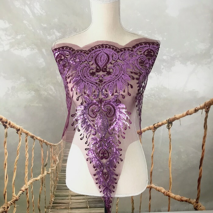 モチーフ パープル 衣装 モチーフレース ネックラインモチーフ チュールモチーフ 服飾 スパンコール 衣装モチーフ 装飾 ハンドメイド バレエ衣装 社交ダンス