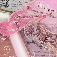 レース 手芸 幅広 フェザー模様 羽模様 ピンク系 刺繍 リボン 飾り 素材 装飾 材料 衣装 チュールレース