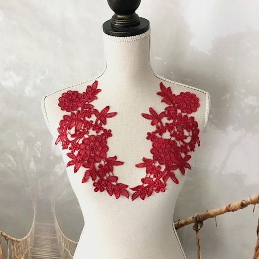 モチーフレース お花 ペアセット モチーフ アップリケ レオタード レッド 赤 ハンドメイド 衣装 装飾 ダンス 社交ダンス ベリーダンス バトンモチーフ