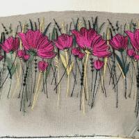 幅広のゴージャスな花柄の刺繍入りチュールレースです。