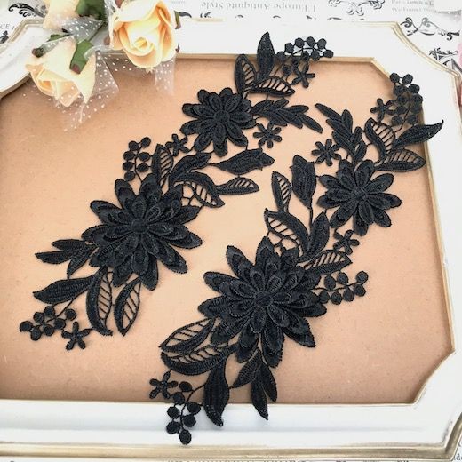 モチーフレース 3D ブラック 黒 立体的 刺繍 ペアセット ハンドメイド バトンモチーフ