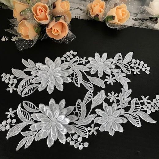 モチーフレース ライトグレー 立体的 刺繍 ペアセット ハンドメイド バトンモチーフ