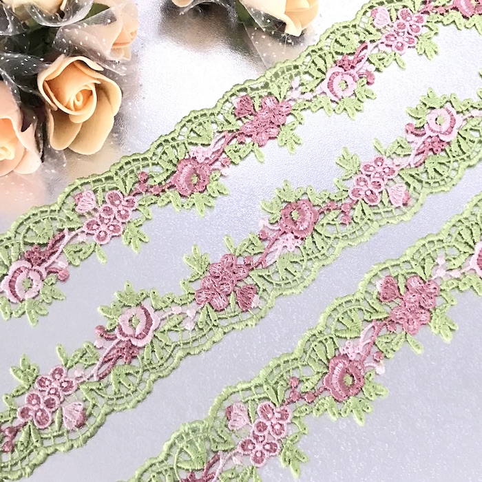 レース リボン 手芸 花 衣装レース ケミカルレース 舞台衣装 ステージ衣装 ダンス衣装 社交ダンス フィギア衣装 装飾 チュチュレース バレエ衣装 グリーン ピンク