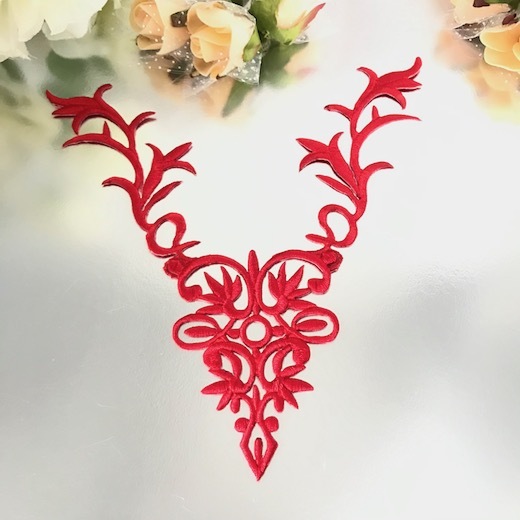 アップリケ レッド ネックライン モチーフ 刺繍ワッペン レオタードモチーフ アイロンワッペン アイロン接着 アップリケワッペン 装飾 バトントワリング