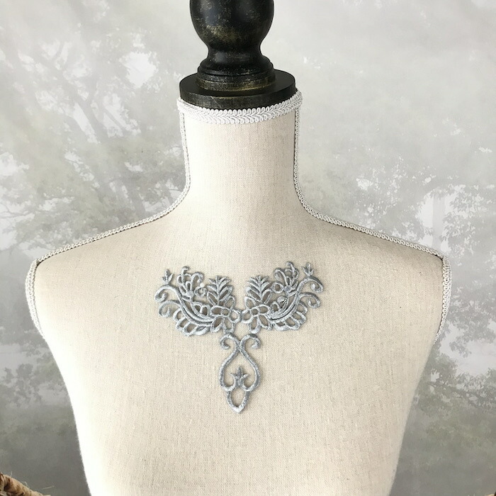 シルバー モチーフ アイロン接着 レオタード バトンモチーフ ネックライン ネックラインモチーフ ワッペン アイロン用 衣装 レオタードモチーフ バレエ衣装