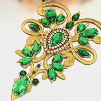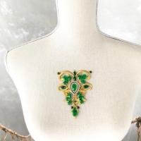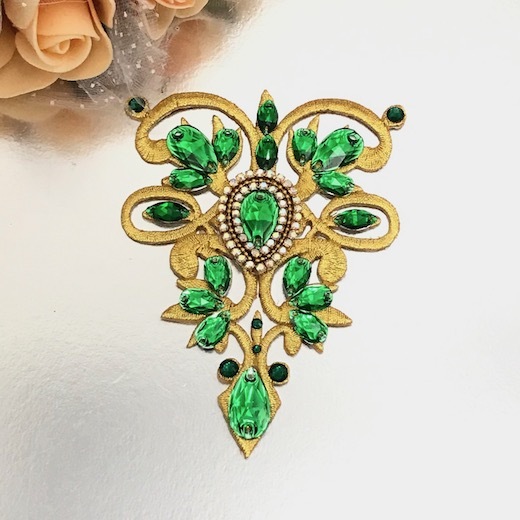 モチーフ アイロン用 ゴールド グリーン ラインストーンモチーフ 衣装 バトンモチーフ 装飾 ネックライン アイロン接着可 レオタードモチーフ