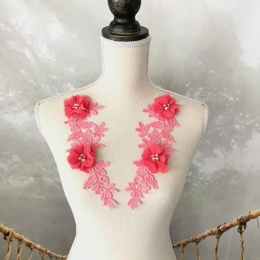 レースモチーフ モチーフ 衣装 バトン お花 装飾 バトン レオタード 新体操 衣装作り バレエ衣装 ピンク