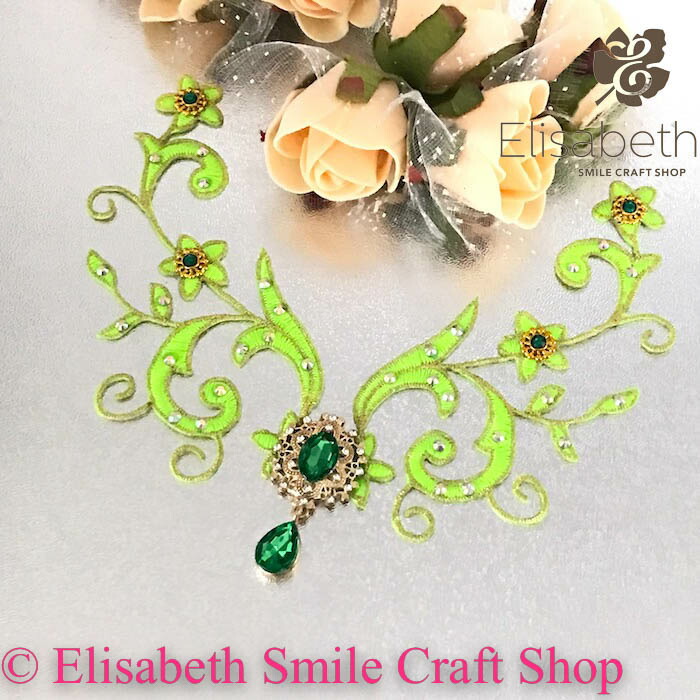 モチーフ アイロン用 グリーン レオタード バトン ネックライン ラインストーン ネックラインモチーフ ワッペン アイロン接着 貼り付け 衣装 レオタードモチー…