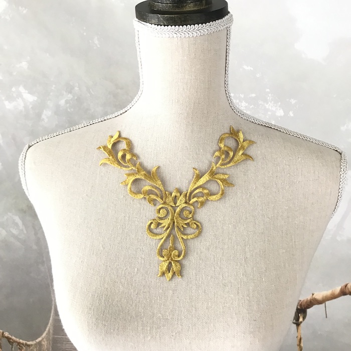 ゴールド レオタード バトン モチーフ ネックライン ネックラインモチーフ ワッペン アイロン用 貼り付け 衣装 レオタードモチーフ バレエ衣装 舞台衣装 ステージ衣装 ダンス衣装 社交ダンス フィギア衣装
