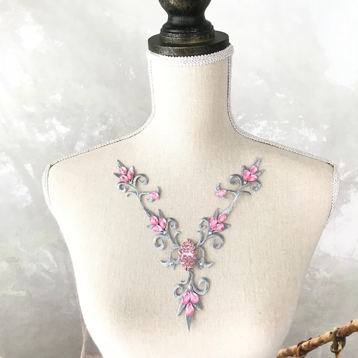 シルバー アップリケ ネックライン モチーフ 衣装 刺繍ワッペン レオタードモチーフ アイロンワッペン アイロン接着 バトンモチーフ バレエ衣装