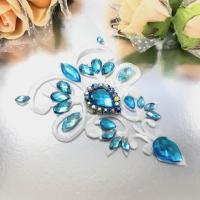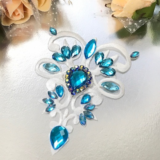 モチーフ アイロン用 ホワイト ブルー ラインストーンモチーフ 衣装 バトンモチーフ 装飾 ネックライン アイロン接着可 レオタードモチーフ