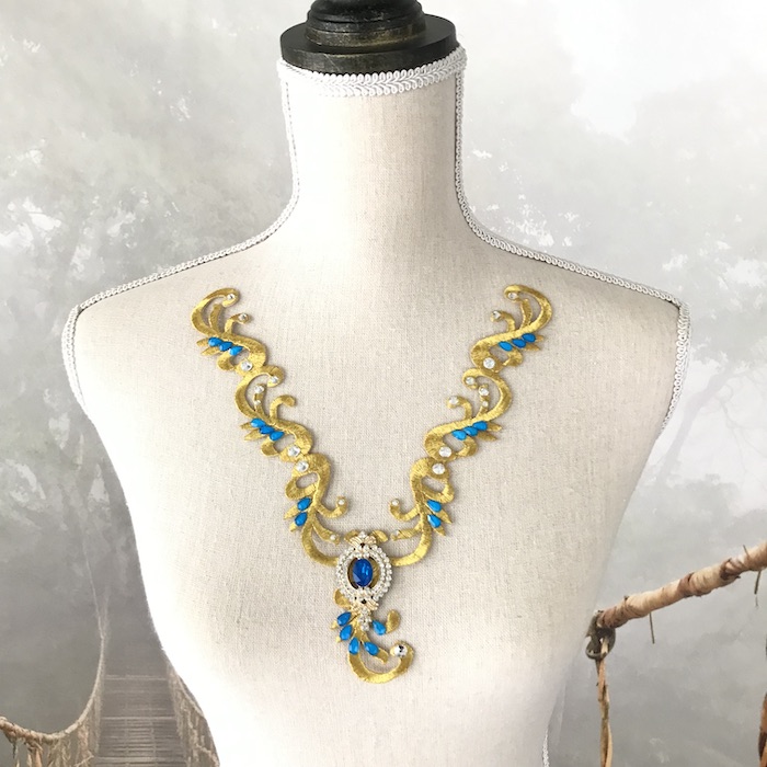 ゴールド アップリケ ネックライン モチーフ 衣装 刺繍ワッペン レオタードモチーフ アイロンワッペン アイロン接着 アップリケワッペン モチーフ 装飾 バトンモチーフ バレエ衣装 舞台衣装 ステージ衣装 ダンス衣装 社交ダンス フィギア衣装