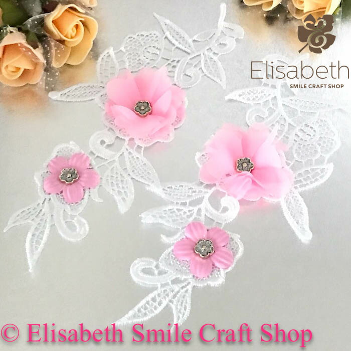 バトン レオタード モチーフ 衣装 花 服飾 レースモチーフ バレエ衣装 装飾 ビーズ付き 新体操 舞台衣装 ステージ衣装 ダンス衣装 社交ダンス フィギア衣装 ホワイト ピンク
