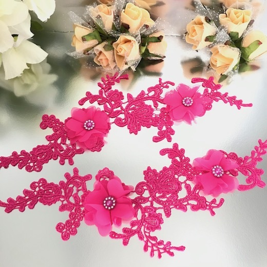 レースモチーフ モチーフ 衣装 バトン お花 装飾 バトン レオタード 新体操 衣装作り バレエ衣装 ピンク