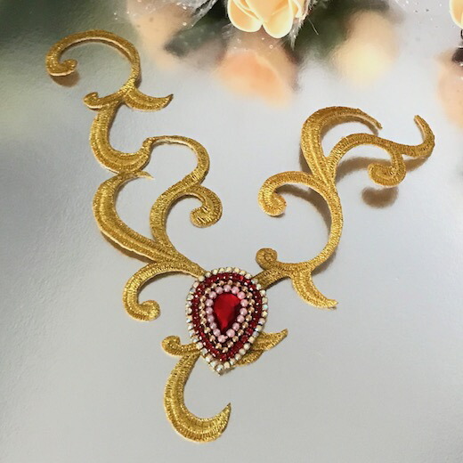 ゴールド レオタード バトン モチーフ ネックライン ラインストーン ネックラインモチーフ ワッペン アイロン用 貼り付け 衣装 レオタードモチーフ バレエ衣装