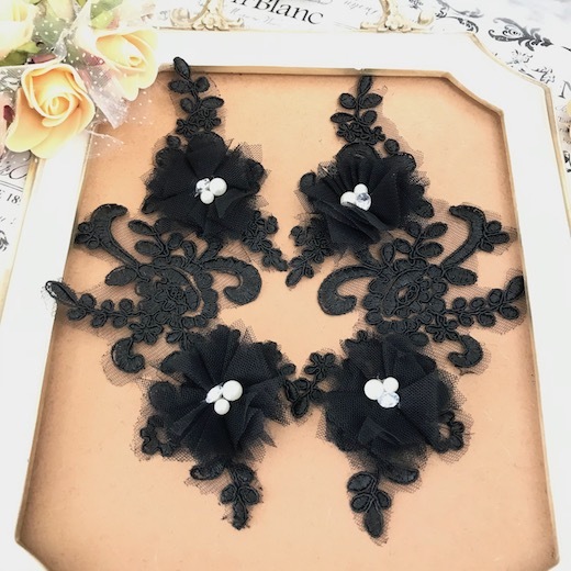 レースモチーフ モチーフ 衣装 バトン お花 装飾 バトン レオタード 新体操 衣装作り バレエ衣装 ブラック 黒