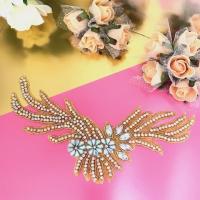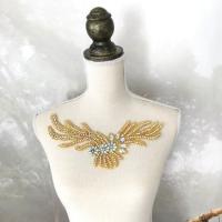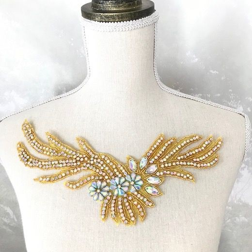 ラインストーンモチーフ ネックラインモチーフ ゴールド 衣装 装飾 ABオーロラ ストーンモチーフ オーロラ 装飾 アップリケ ワッペン アイロン用 ハンドメイド