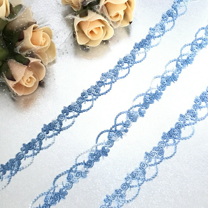 ブルー系の濃淡カラーの装飾用レースになります。