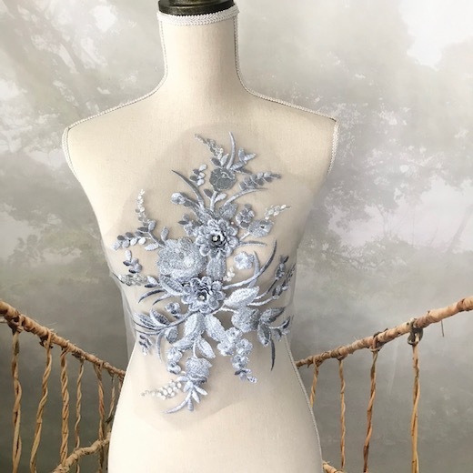 新体操 衣装モチーフ レオタードモチーフ バトンモチーフ 装飾 チュールモチーフ 花柄 衣装 ダンス 装飾 ハンドメイド パーツ レースモチーフ シルバー グレー
