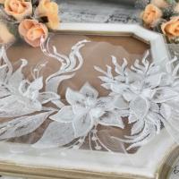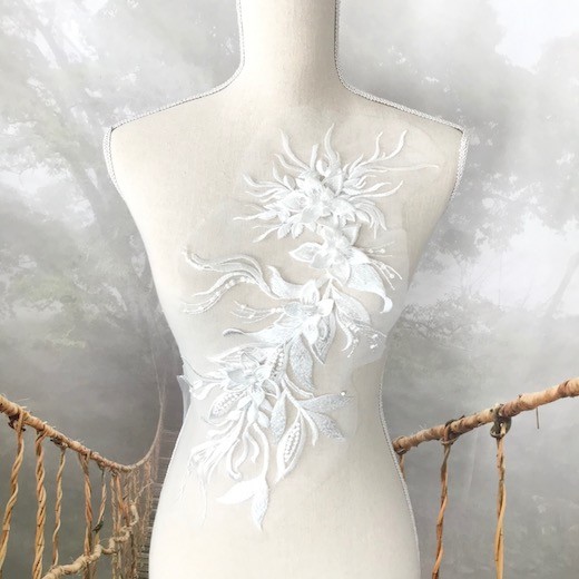 3D 花 ホワイト 刺繍 チュール モチーフ ハンドメイド 衣装 装飾