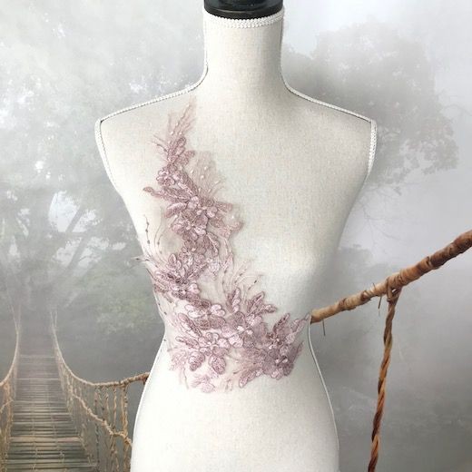 モチーフレース スパンコールモチーフ チュール レース リボン パーツ ピンク 花柄 刺繍 チュール ブライダル 衣装 レオタード スパンコール付