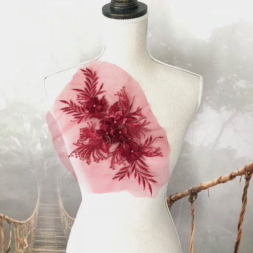 3D 花 刺繍 チュール モチーフ レッド ハンドメイド 衣装 装飾