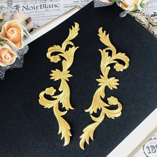 アイロン接着できるゴールドの刺繍モチーフセットです。