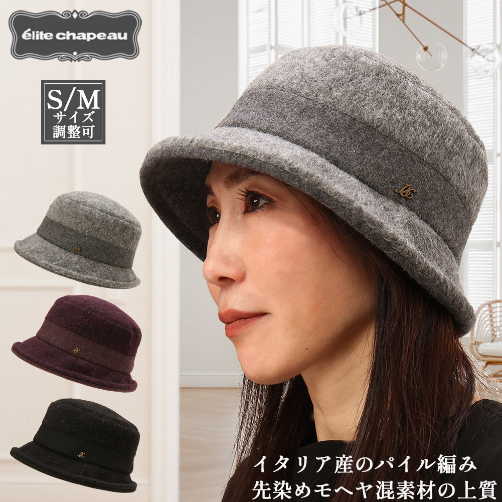 帽子 レディース elite chapeau 33023EG エアリーモヘヤ グレー ブラック パープル Sサイズ Mサイズ 70代 80代 60代 50代 婦人