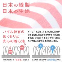 パイルの存在により、保温性と吸湿性が向上し、パイル特有の優しい触り心地と適度な伸縮性を実現しています。