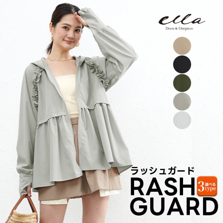 レディース ラッシュガード ラッシュパーカー 夏 春 紫外線対策 UVカット 日焼け対策 涼しい フリル ギャザー 可愛い パーカー 指穴付き yc1307c