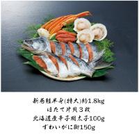 新巻鮭半身特大1.8kg、ほたて貝、明太子、ずわいがにをセットにした北の美味を豊富に揃えました。ご贈答に!自家用に!たくさんの味が楽しめて最適な商品です♪