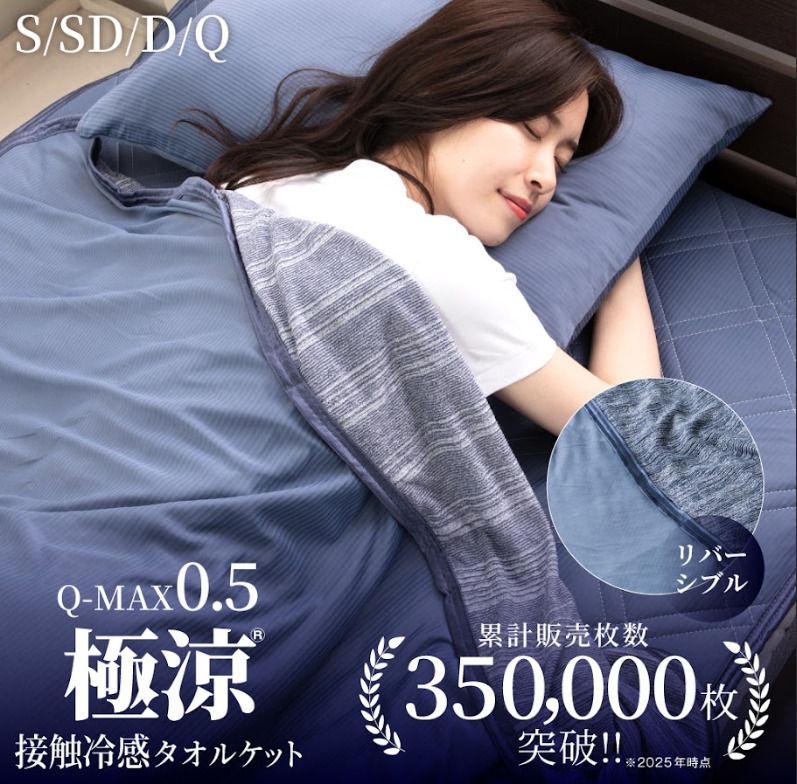 冷感3.8倍以上の極涼冷感リバーシブルタオルケットなら暑くて寝苦しい夜でも極冷えで快適に眠れます。