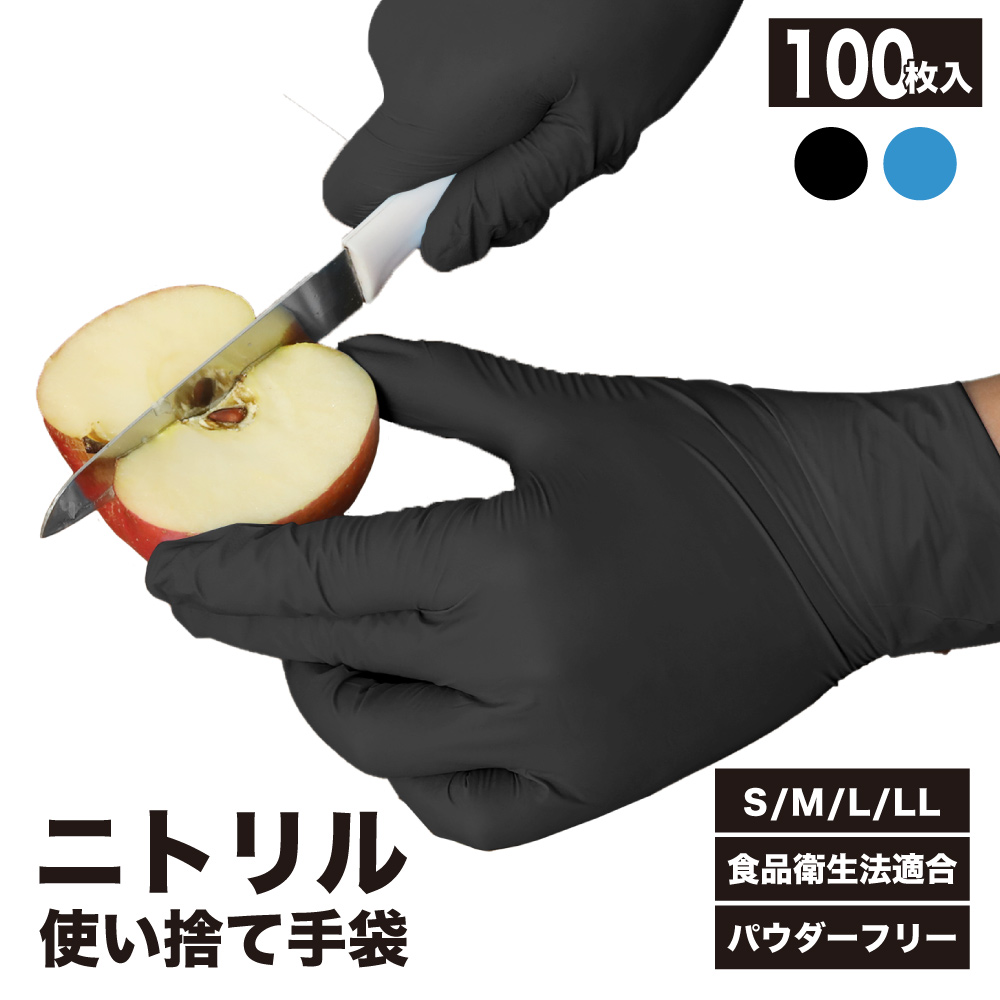 ニトリル手袋 食品用 食品衛生法適合 100枚 パウダーフリー キャンペーン 使い捨て ニトリル手袋 耐薬性 飲食店 家庭 イベント 料理