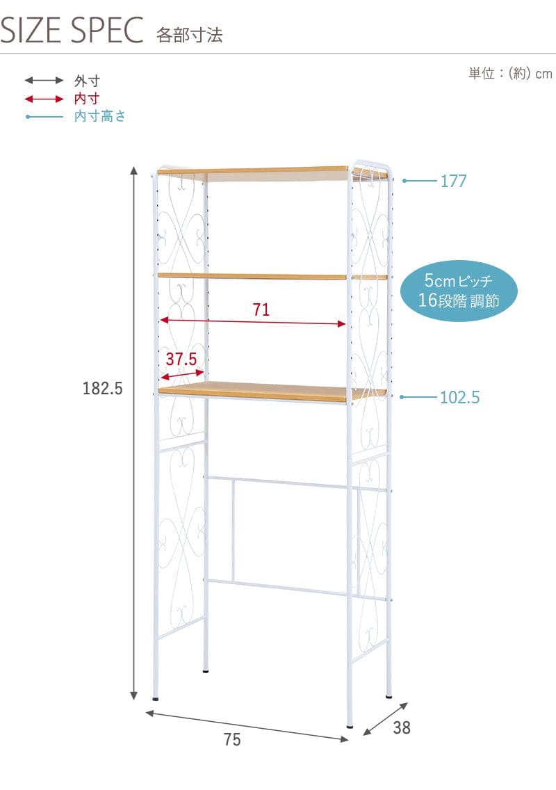 ■サイズ:(約)幅75×奥行38×高さ182.5cm