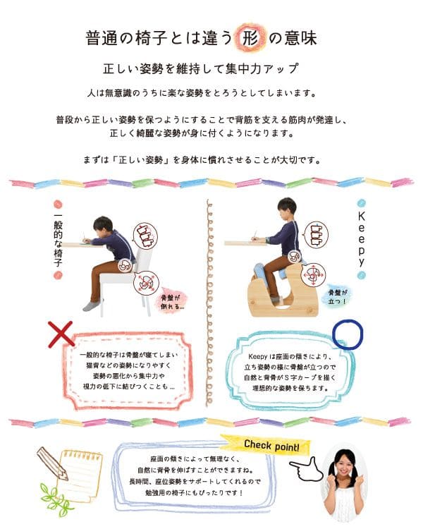 学習椅子 バランスチェア 子供 姿勢 足置き 椅子 姿勢矯正 背筋 リビング 木製 高さ調整 クッション キッズ おしゃれ コンパクト スリム シンプル デスクチェア