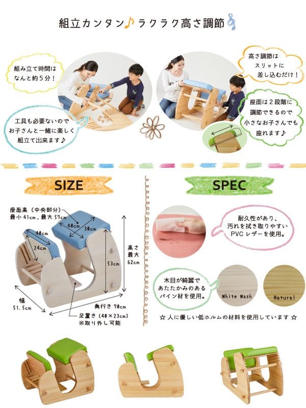 ■材質:天然木(パイン材、ラッカー塗装)・合板・ウレタン 張地:PVC