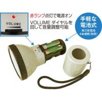 電子ホイッスル音で非常時に周囲へ注意喚起。音声の音量を簡単調整。