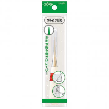 細かい作業に便利です。手にしっくりなじみます。カドを整える、ミシンがけの時に布を送る、糸をほどく…など細かい作業に使います。目打の使い心地はそのままに、布地の繊維や縫い糸に引っかかりにくく、糸割れを起こしにくい形状です。ニット地やデリケートな生地にも安心です。従来の目打と見分けやすい白色の持ち手です。