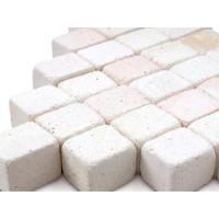 ホワイト〜パステルピンクの色幅を持った明るい色彩のレンガです。主に屋内向けのガーデン装飾アイテムとして。窓辺のグリーンのアクセントに、あるいはミニオブジェとしても最適です。一般的なレンガの8分の1サイズ。