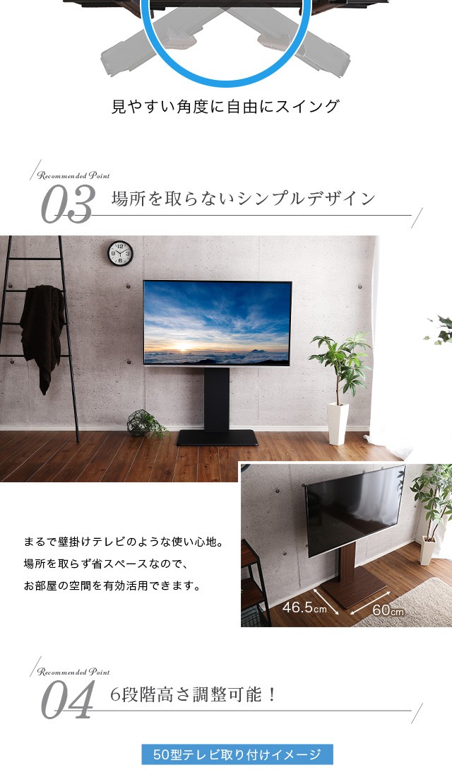 テレビスタンド ロータイプ 壁寄せ TV台 スタンド テレビ台 壁掛け風 32型 おしゃれ 50型 TVボード 回転 55 テレビボード 北欧 一人暮らし 50インチ 42インチ