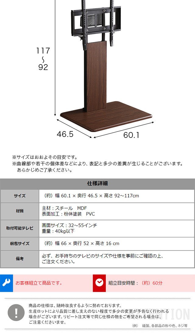 【商品サイズ】約W60.1×D46.5×H92〜117