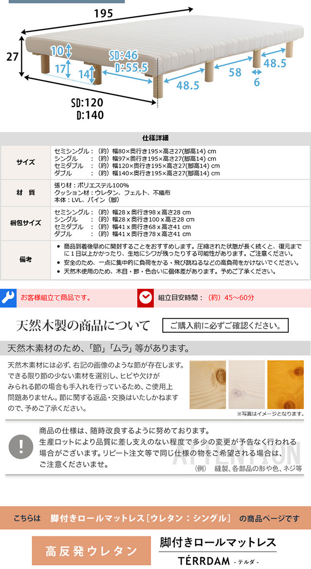 【商品サイズ】97x195x27cm