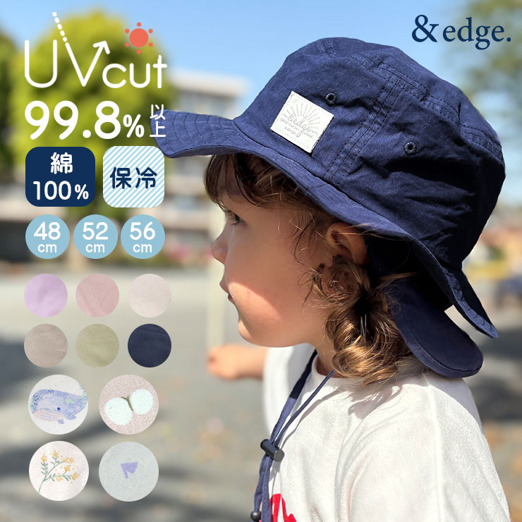 コットンハット 帽子 保冷剤ポケット付き ベビー キッズ 男の子 女の子 子供 赤ちゃん UVカット 洗える つば広 綿100% 46cm 48cm 50cm 52cm 54cm 56cm 春 夏用