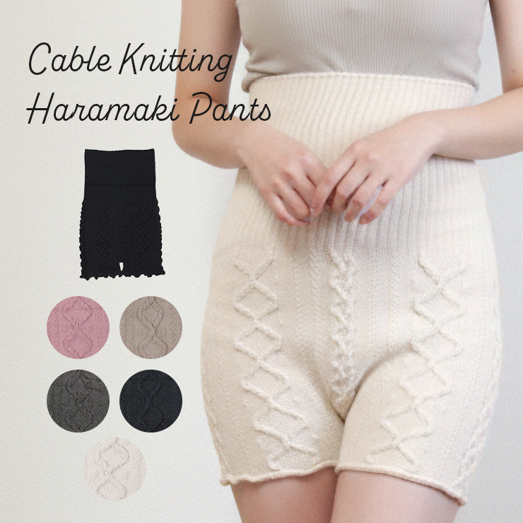 メール便送料無料!寒さが厳しい季節に欠かせないあったかアイテム「ケーブル編みもこもこモール腹巻きパンツ」。